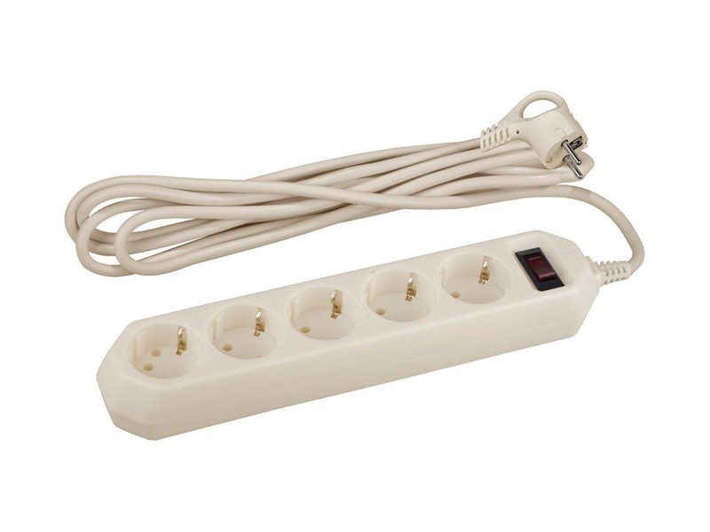- Сетевой фильтр ЭРА USF-5es-5m-W 5 гн 5м, ПВС 10А с/з с выкл. белый
